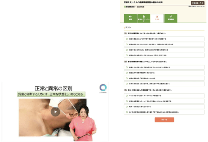 ▶ さらに!看護技術に必要な基本的知識の講義動画と確認テストで理解を深める!