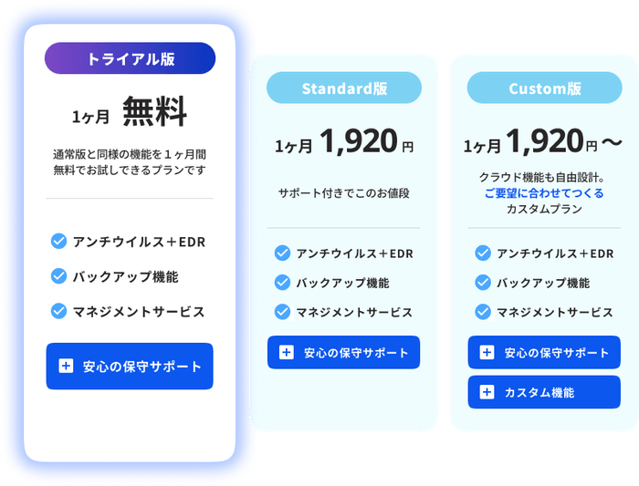 • 内容:30日間フル機能・台数無制限トライアル + セキュリティリスク無料診断(標的型攻撃メール訓練)