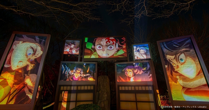アニメ『鬼滅の刃』の世界をニジゲンノモリの大自然の中に再現。