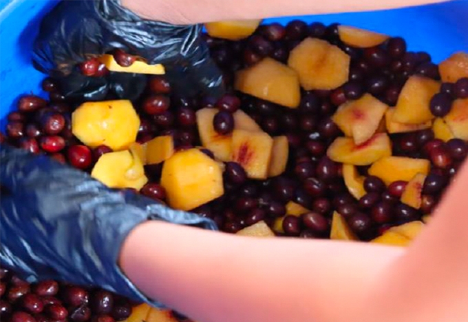 ピーチを加えるタイミングは天候、品種、発酵具合、フルーツの反応を見極め、加えています。