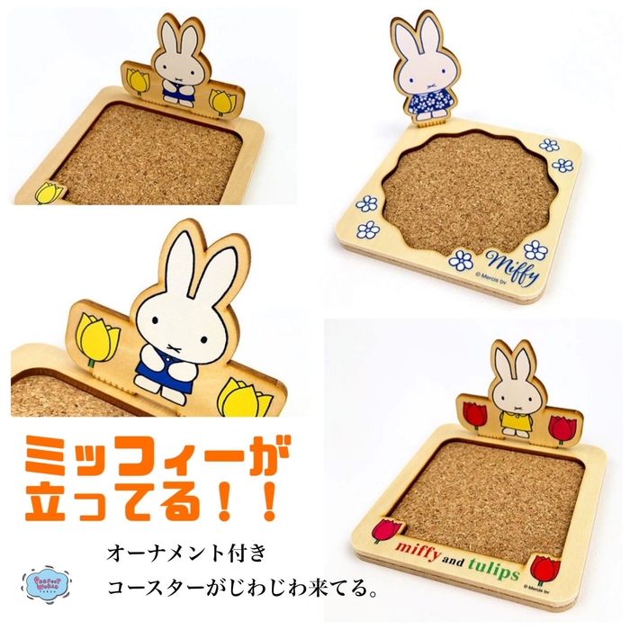 ミッフィーがこんな風にちょこんと立つんです。キャラクターデザインのコースターは世の中にたくさんありますが、そのなかでもキャラクターが立体的に表れるとかなり癒されます。