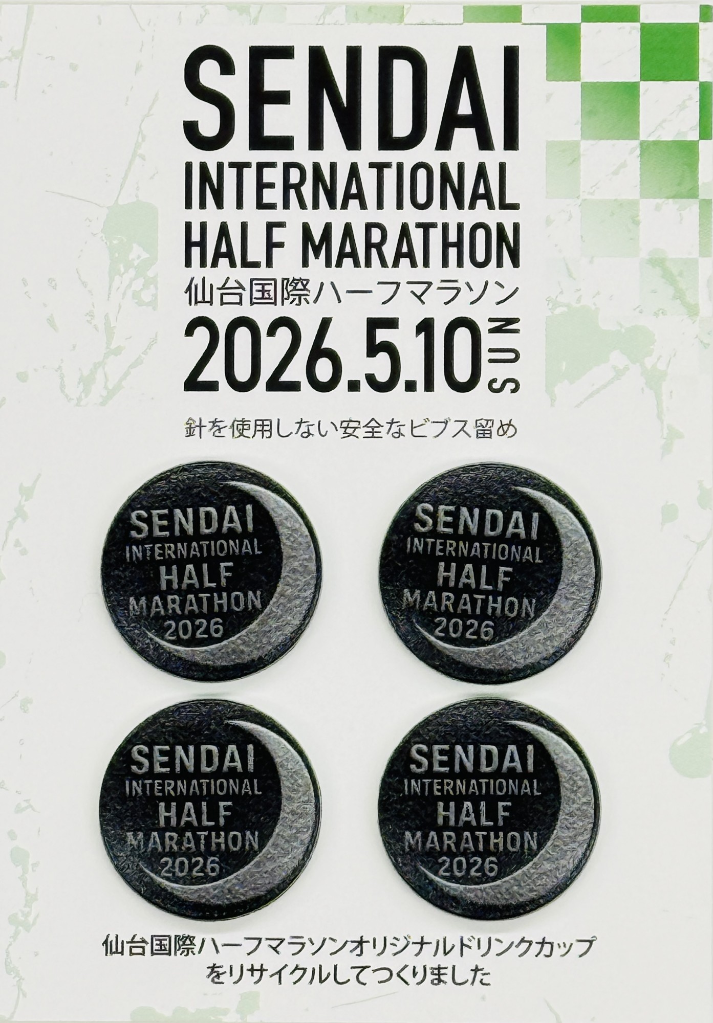 2026仙台国際ハーフマラソン公式 給水所の使用済みカップから生まれた「ビブス留め」EC販売開始