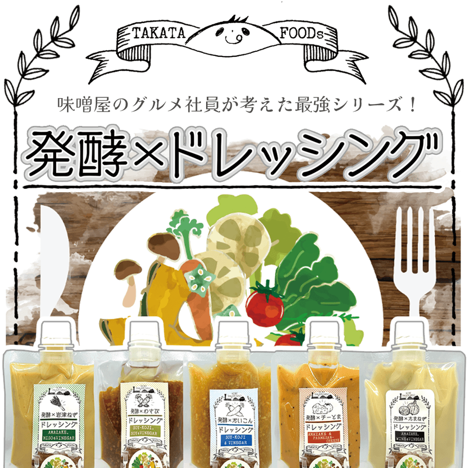 株式会社 たかた(所在地:兵庫県神戸市)は、この度「味噌屋のグルメ社員が考えた最強シリーズ」の新シリーズとして、糀から造る発酵醸造メーカーだからできる発酵食品をふんだんにつかった【発酵×ドレッシング】シリーズ(全4種)を2023年3月1日に発売いたしました。