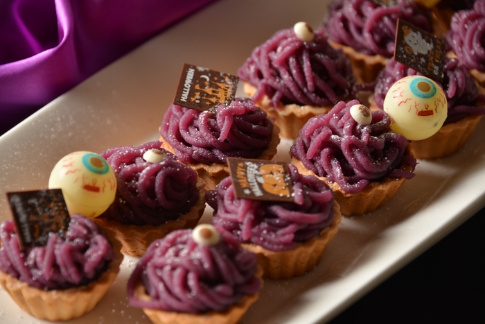 カボチャ、サツマイモ、松茸など秋の味覚を使用したメニューに加え、お化けの形をしたパイ生地が目を引く「お化けミートパイ」、ブラックタピオカをトッピングし不思議な食感が楽しい「パンチェッタとブラックタピオカのピザ~ハロウィンスタイル~」、ギョロっと目玉のチョコレートを乗せた「紫芋のお化けモンブラン」など、ハロウィンならではのメニューもご用意いたします。