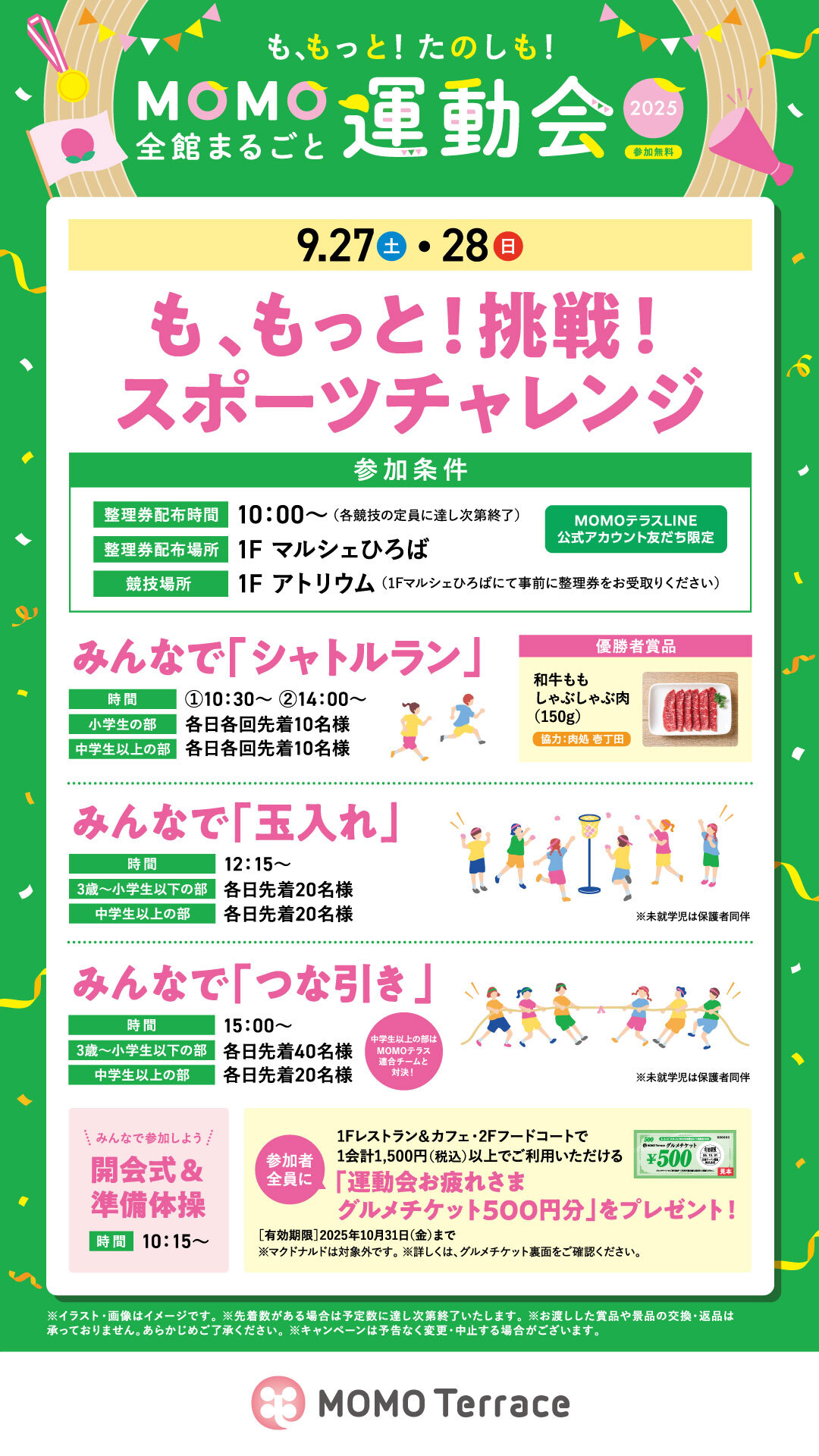 家族で楽しむ“スポーツの秋”in MOMOテラス! 「MOMO全館まるごと運動会」がパワーアップし 9/27(土)・28(日)開催 | NEWSCAST