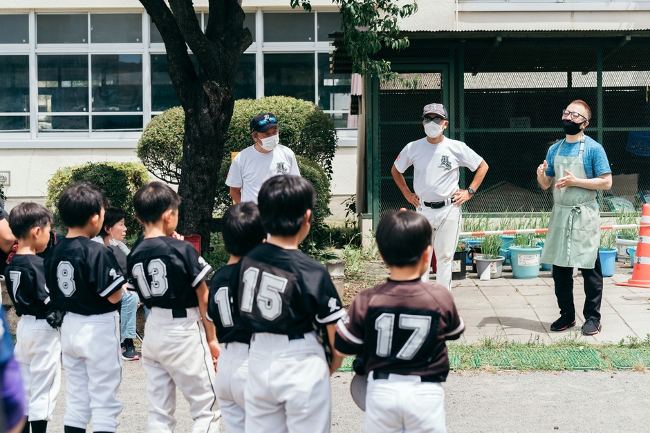 店主の渡真利が実際にグランドに足を運び、子供達や保護者の皆様へご挨拶を行いました。19年もの間、地元八王子横川町で活動を続けてきた中で、笑顔が何よりも大切と感じており、コロナ禍の厳しい状況下だからこそ、地域の人たちと一緒になって現状を打破することに寄与したい旨をお伝えしました。