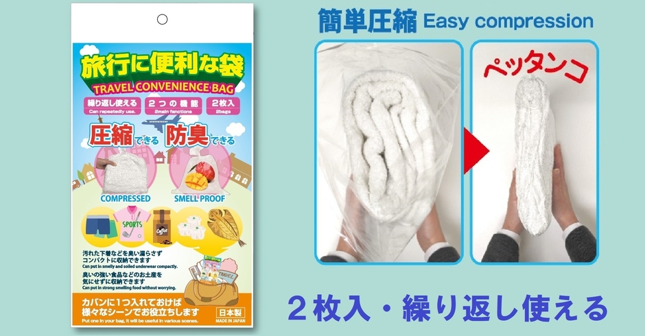 圧縮と防臭ができる『旅行に便利な袋』を Makuakeにて12月27日に先行発売しました