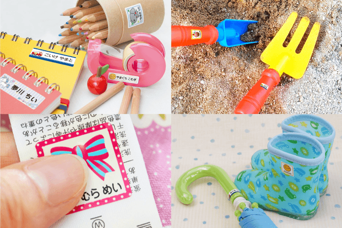 コップや水筒、クレヨンや色鉛筆、お道具箱等に貼ることができます。傘や長靴にも貼ることが可能。外遊びのお砂場グッズに貼れば、他のお子さまと区別がつくので安心です。