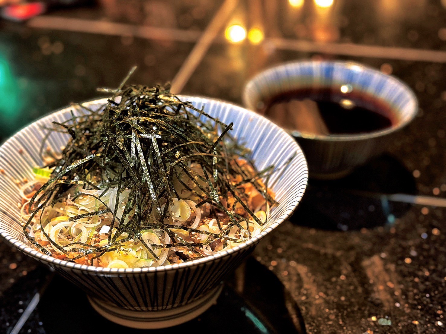 また、黒舞茸天、自分好みにカスタマイズできる豊富なトッピングなど、素材へのこだわりも特長です。あえてテイクアウトや温かいそばの提供は行わず、「冷し肉そばをその場で味わう体験を提供」というスタイルを貫いています。
