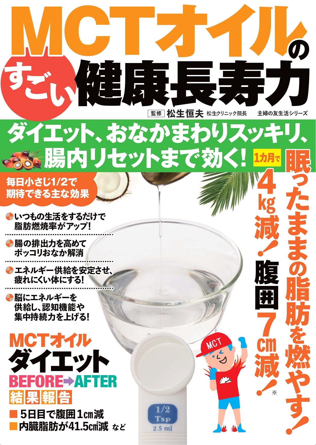私が独自に行ったクリニックの調査・研究では、実践者のほぼ100%の患者で便通改善効果が得られています。これらの経験を経て、元々認知されている『脂肪燃焼効果』に加えて、『腸の機能をリセットする=排出力を高める効果』を持つMCTオイルに注目し、書籍出版に至りました。