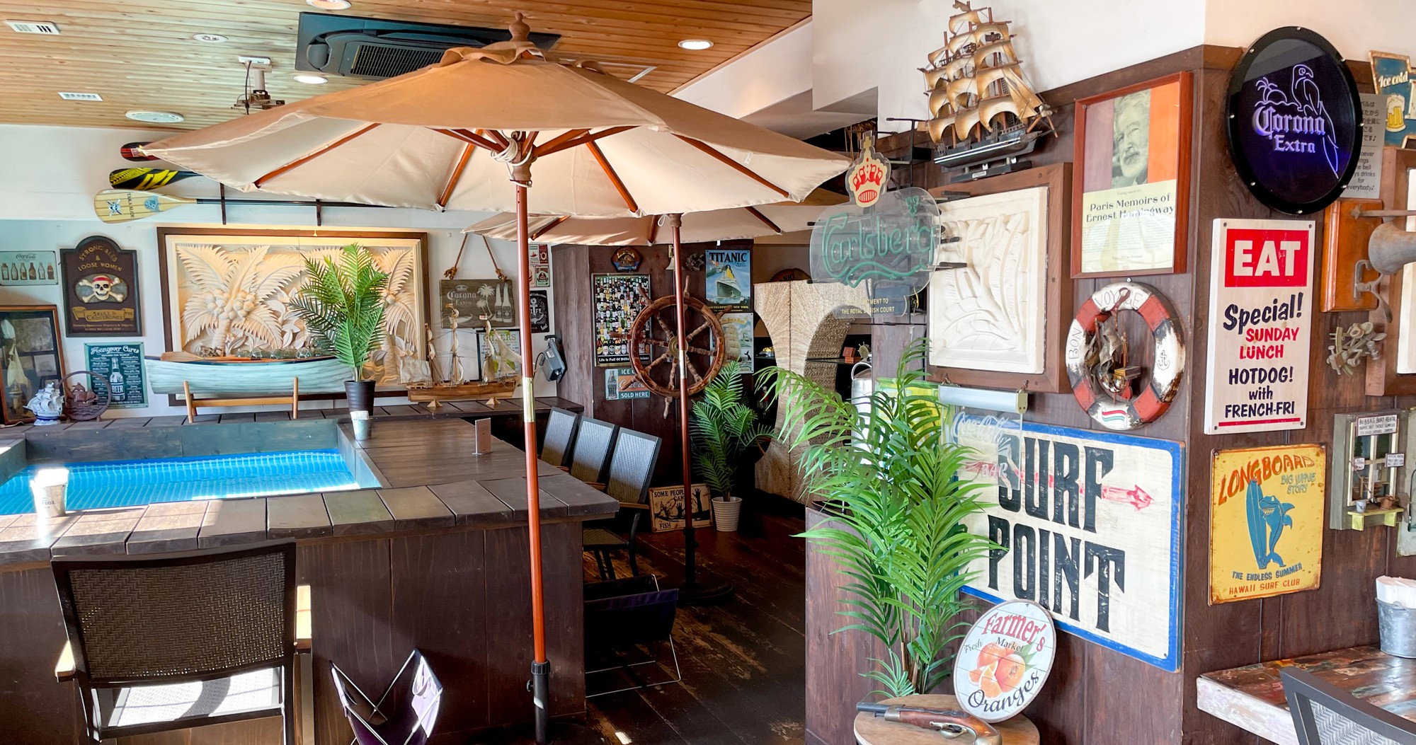 Hemingway江ノ島は、江ノ島の絶景を楽しめる海沿いのカフェ・バー&レストランです。作家アーネスト・ヘミングウェイの公式認定を受けている店舗で、窓からは美しいオーシャンビューが広がり、まるで船の中にいるかのようなこだわりのインテリアが出迎えます。提供しているお食事は、大人気のスイーツ「ベーグルフレンチトースト」や野菜たっぷりの本格派「スープカレー」、新鮮な海の幸を使用した「しらすパスタ」など、湘南ならではの食材が楽しめます。落ち着いてゆったりくつろげる雰囲気が魅力なので、江ノ島、シーキャンドル観光の合間や、大切な人とクリスマスを過ごすのにぴったりなスポットです。海辺のゆったりと流れる時間の中、絶景とおいしい料理で、忘れられないひとときをお過ごしいただけます。