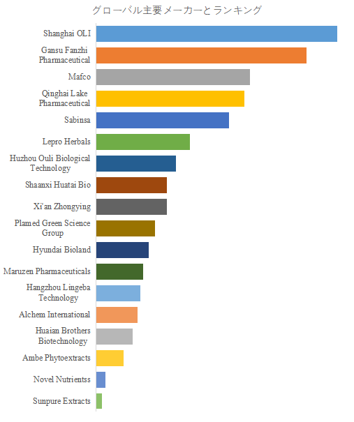 LP Informationのトップ企業研究センターによると、グラブリジンの世界的な主要製造業者には、Shanghai OLI、Gansu Fanzhi Pharmaceutical、Mafco、Qinghai Lake Pharmaceutical、Sabinsa、Lepro Herbals、Shaanxi Huatai Bio、Huzhou Ouli Biological Technology、Xi'an Zhongying、Plamed Green Science Groupなどが含まれている。2024年、世界のトップ10企業は売上の観点から約71.0%の市場シェアを持っていた。