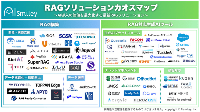 アイスマイリー、RAGソリューションカオスマップを公開!ーAI導入の価値を最大化する最新RAGソリューション 84製品を紹介ー