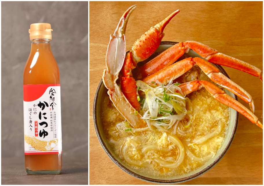 2025年調味料選手権 出汁部門 ≪最優秀賞受賞≫の『かにつゆ』を使用した蟹のかき卵餡かけうどん。お正月にぴったりな蟹をお楽しみ頂けます