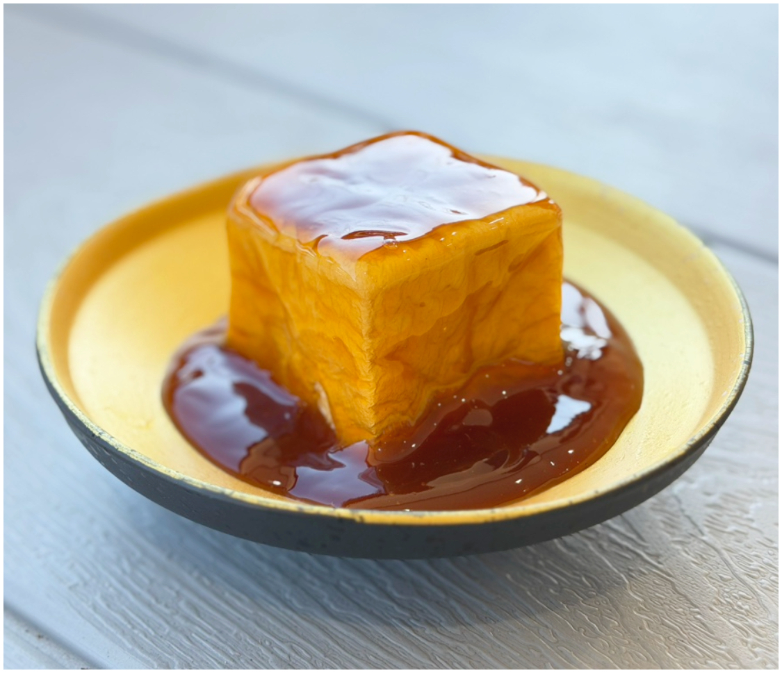 ほんのり甘いキューブぱんにカスタードクリームを注入、仕上げに濃密みたらし餡をたっぷりまとわせた、飲めるほど濃厚な和スイーツぱん
