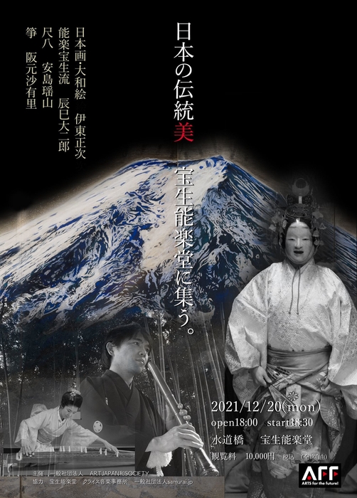 一般社団法人ARTJAPAN和SOCIETY(所在地:東京都稲城市、代表理事:伊東 正次)は新型コロナウイルスの感染対策を実施し、宝生能楽堂にて、大和絵師の日本画をバックに能楽と邦楽、そしてプロジェクション映像を交えながら、初の能楽堂で見事な日本の文化芸術の融合を表現します。