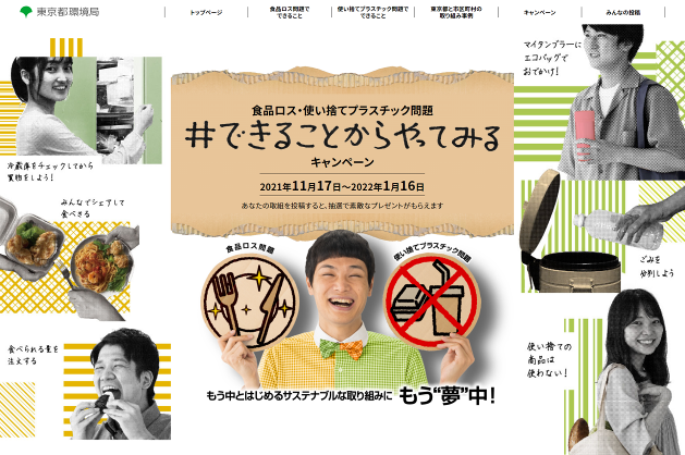 新型コロナウイルス感染症の影響を受け、テレワークやデリバリー利用など「新しい日常」により、家庭で過ごす時間が増えています。暮らし方・働き方の見直しや工夫が求められる中、「食品ロス」と「使い捨てプラスチック」の削減に向けたムーブメントづくりを推進するため、この度、東京都環境局からの受託事業として、下記のとおり「#できることからやってみるキャンペーン」を実施します。