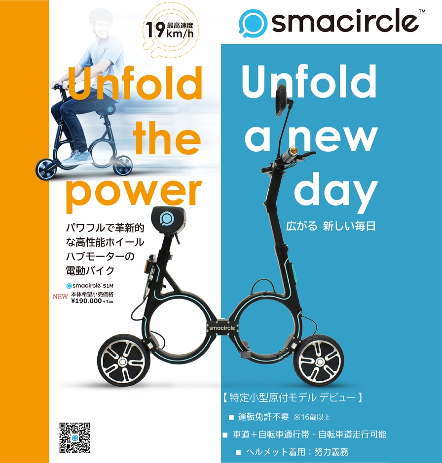 コンパクトに畳めて持ち運び可能! 次世代モビリティ「smacircle」に 特定小型原付の保安基準に対応して改良された新型車両 「smacircle S1M」が7月31日デビュー!