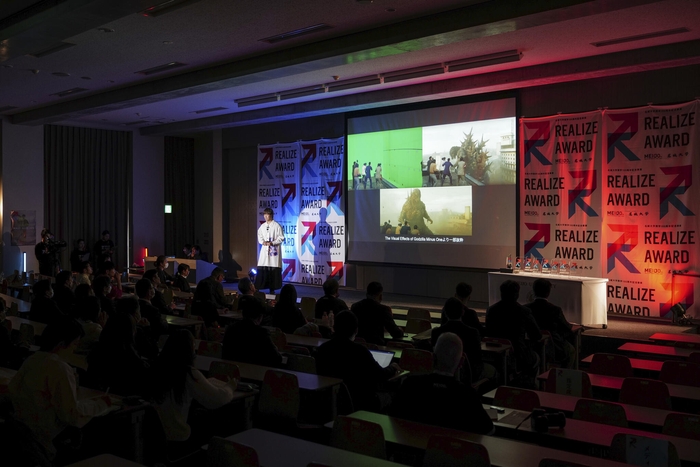REALIZE AWARDは、実現したい夢に向かってチャレンジした学生たちの取り組みを称え、一歩を踏み出して得た学びを共有してもらおうと企画しました。本学と名城大学附属高等学校に加え、本学が指定管理法人を務める愛知総合工科高等学校専攻科の学生・生徒を対象に募集し、81人がエントリー。書類選考で選出された7人がこの日、プレゼンテーションに臨みました。