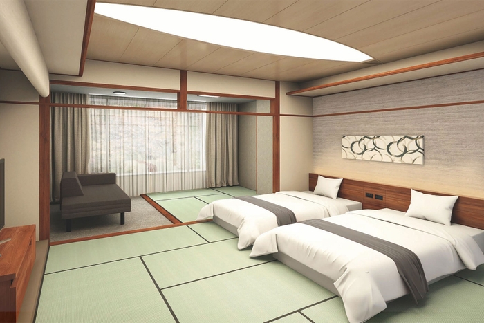 リニューアルを機に、一部の客室を和ベッドルームにリノベーション。和の情緒を残しつつ、ベッドで快適に過ごせる和ベッドルームは、シニアのお客様や小さなお子様連れのお客様も快適にお過ごしいただけます。そのほか、和室、洋室、和洋室など、多種多様な部屋タイプをそろえているので、ご宿泊される人数や旅の目的に合わせてお好きなタイプをお選びいただけます。どの客室も、シンプルながらも旅の疲れを癒せる落ち着いた印象の客室となっております。