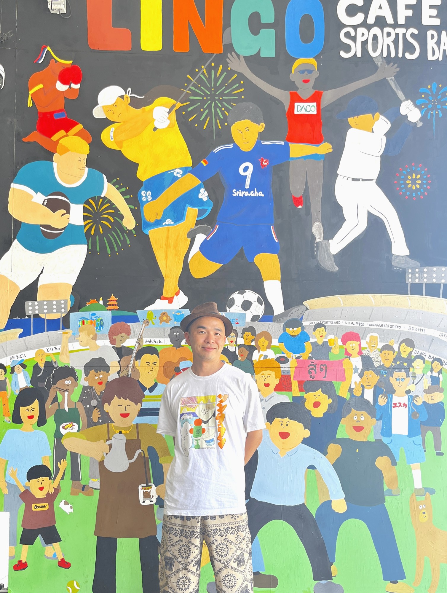 私は普段、タイでアーティストとして活動しながら、絵本やイラスト、Tシャツなどを制作・販売し、同時に子どもたちへアートを届ける活動を続けています。