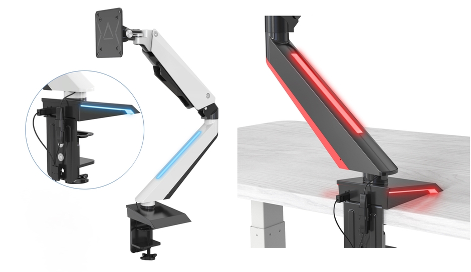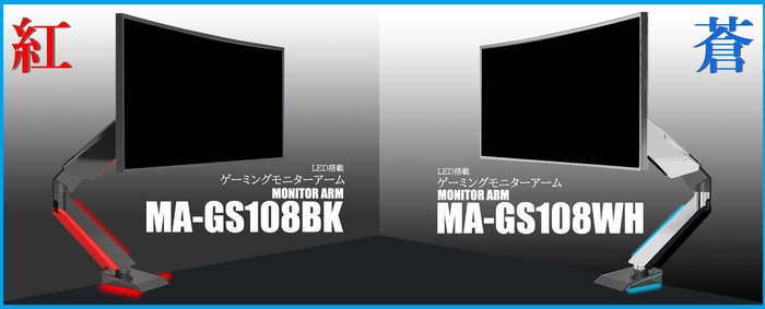 紅に光るブラック/蒼に光るホワイト! 2種のカラーラインナップでゲームを盛り上げる! 「LED搭載ゲーミングモニターアーム」販売開始