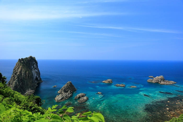 青く透き通るような海はその美しさから「積丹ブルー」と呼ばれています。