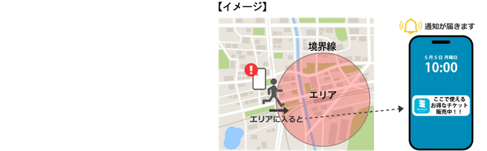 ■当社グループが販売するお得なデジタルチケットやクーポンが使える場所や店舗、グループ各施設で開催されるイベントやセール会場付近を訪れたお客様に向けて、リアルタイムな情報をお届けします。