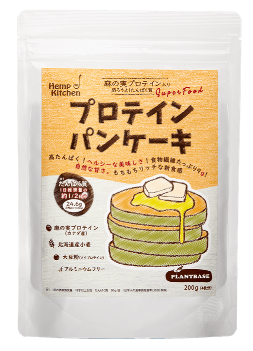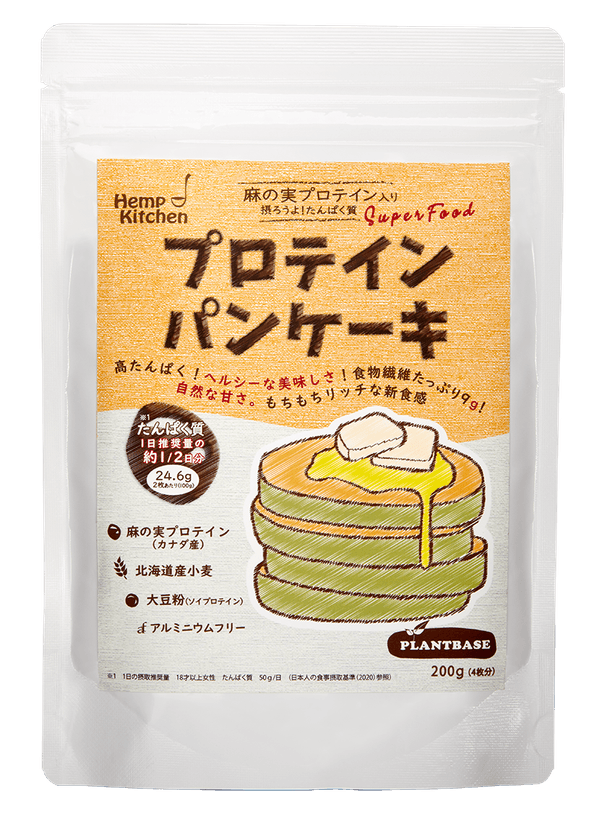 「麻の実プロテイン入り プロテインパンケーキ」詳細: https://www.hempkitchen.jp/user_data/item_pancake_mix