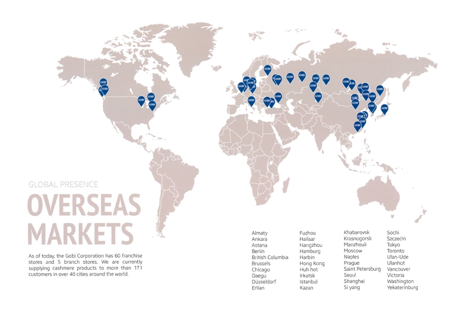 近年、インターネット上では中国製の安価なカシミヤ製品が出回っていますが、それらとは比べものにならない上品なツヤと極上の肌触り。デパートや高級セレクトショップで扱っている高価なカシミヤ製品と比べても同レベルです。それはそのはず。ヨーロッパやアメリカを中心に世界のカシミヤブランドへカシミヤ原毛を提供しているのは、この「GOBI CASHMERE(ゴビカシミヤ)」なのです。(全てのカシミヤブランドへ提供しているわけではありません)