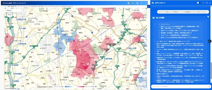 これまでは、各町丁目単位での推計来訪者数や人口、世代構成、世帯年収、持ち家率、世帯人数などを統合的に統合的に分析するには多くの手間と時間がかかっていました。今回のアップデートにより、出店担当者は分析目的に応じたプロンプトを入力するだけで、自社ブランドに最適な出店候補地がどうかを即座に見極めることができます。