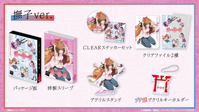 そんな本作品のゲームプレイ期間を既報の終了日より1年延長し、2026年6月5日(金)までに変更いたします。そして、ゲームプレイ期間延長を記念して、本作品の割引セールの実施も決定。『謎物語』が過去最大割引率の35%オフで購入可能です。本セールは、特製スリーブやアクリルスタンド、クリアファイルなどキャラクターごとのアイテムが5種7点付属した数量限定の「特典付きパッケージ版」も対象。最大1,120円もお得にお買い求めいただけます。