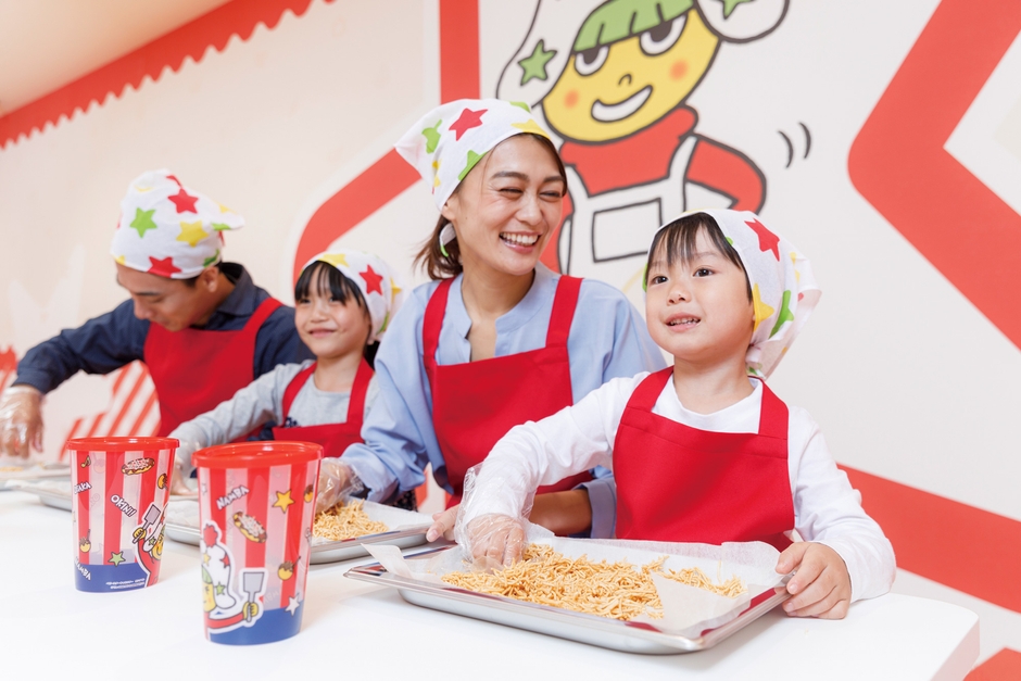 eg]本格的なベビースターラーメンの味付け体験ができます。ベビースターの麺にお好みの味付けをし、専用のオーブンで焼きあげます。お友達同士、ご家族皆さんで参加すれば、色々な味に仕上がったベビースターをシェアして会話が弾むこと間違いなし!