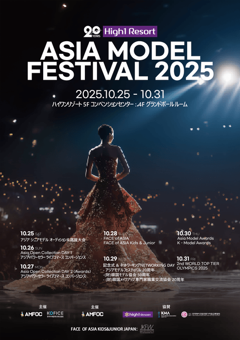 「Asia Model Festival(アジアモデルフェスティバル)」は、韓国文化体育観光部の後援を受け、AMFOC(Asia Model Festival Organizing Committee)が主催する、アジアを代表する国際モデルイベントです。今年で20周年を迎え、23ヵ国以上から選ばれたモデル・デザイナー・アーティストが集結。ファッションを軸に、文化・芸術・多様性が交差するグローバルステージとして世界中から注目を集めています。