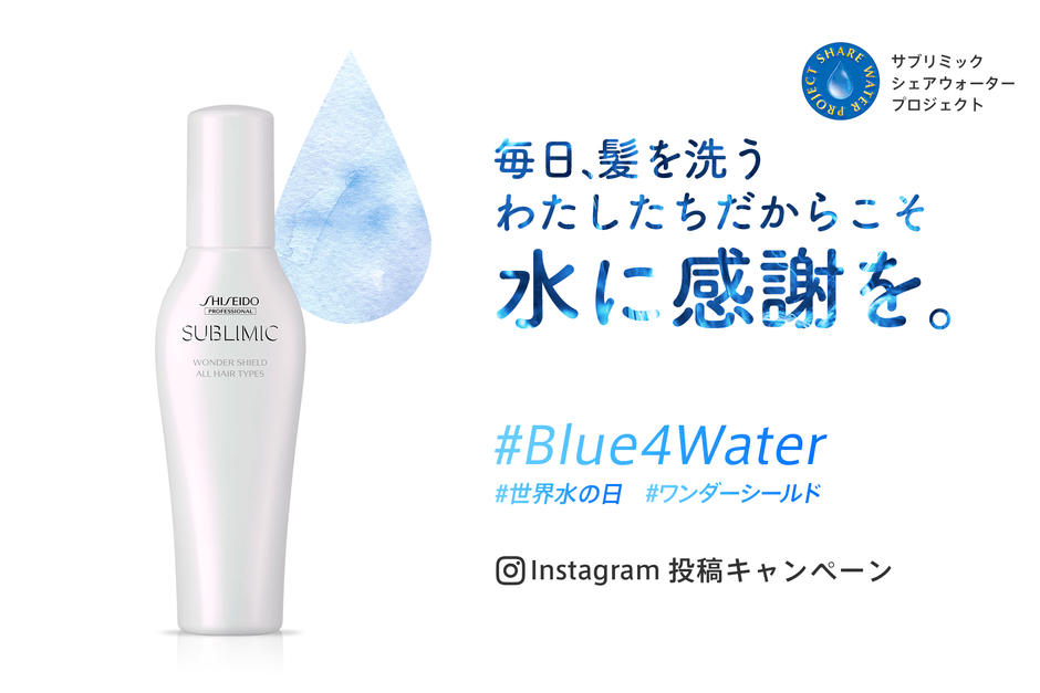 資生堂プロフェッショナルは、3月22日の「世界水の日」に合わせ、2023年3月22日(水)~2023年5月7日(日)の期間、インスタグラム投稿キャンペーン「#Blue4Water」を開催。1投稿につき、200円をウォーターエイドジャパンに寄付するキャンペーンを実施します。