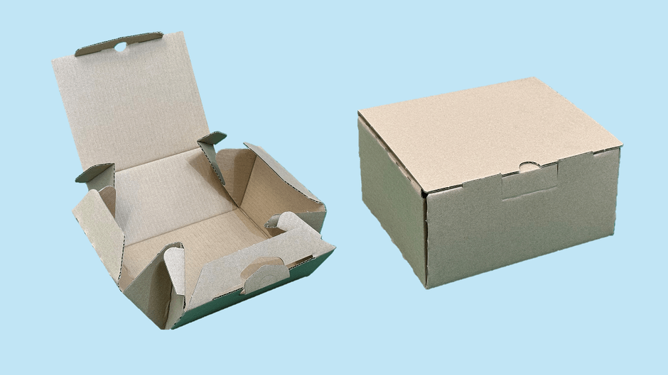 従来は、上下分割式の箱を使用しておりステッチ留め加工とPPバンド掛けが必要なため、廃棄時に分別が必要でしたが、風呂敷型の形状へ変更したことで段ボール素材のみの包装を実現し、廃棄が容易となりました。さらにロックを外すだけで箱が全開する設計により、製品が取り出しやすくなった結果、お客様の作業効率も向上しました。