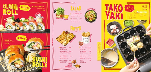 SNS映え間違いなし!他にはないユーモアが詰まったオリジナルのフードメニューが盛沢山!味はもちろんのこと見た目や器にまでこだわりました。また、お客様のテーブルでお作りいただく「たこやき」や「まきまきずし」は、みんなでわいわい楽しめるのでお祝い事にも最適。