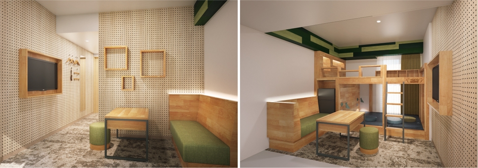 室内のレイアウトは、機能性と遊びゴコロを持たせるため、それぞれのテーマに共通して2段ベッドを採用し、東急ハンズの店内を連想させる有孔ボードに備品を設置する事によって、ハンズの持つ“にぎわい感”を演出しております。また、備品に採用した商品につきましては、ハンズの“選べる楽しさ”を訴求するため、同じ用途でも複数種類ご用意したものもあり、購入前の試用の場としての位置づけも兼ねております。店舗では使い心地を実感しづらい商品を、東急ステイ新宿イーストサイドで体験出来る環境をご提供するとともに、気に入った商品はオンラインショップ『ハンズネット』を通じ、その場で購入が可能な仕組みを構築しております。この度の取り組みにより、東急ハンズのコンセプトルームは、ご利用のお客様の快適な滞在中の過ごし方をサポートいたします。