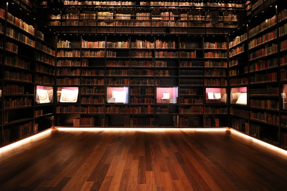それは広く、深い知の冒険の入口です。壮麗な書棚におさめられた書物たちが、私たちを見果てぬ東洋の旅へと誘います。