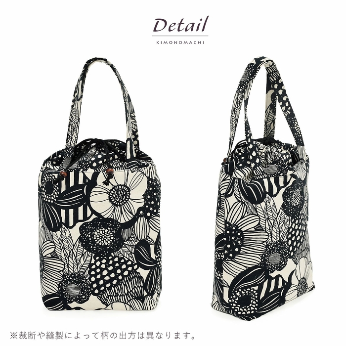生地も縫製もしっかりと作られているので、お出掛けバッグとしてだけでなく、エコバッグとしても大活躍。巾着が付いていることで、買った食材が見えてしまうのも防いでくれます。