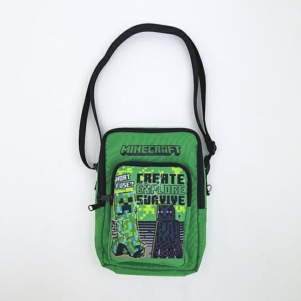 マインクラフトでお馴染みのキャラクターがショルダーバッグに大きくデザインされています。文字のデザインもドッドでゲームの世界観がショルダーバッグいっぱいに再現されています。