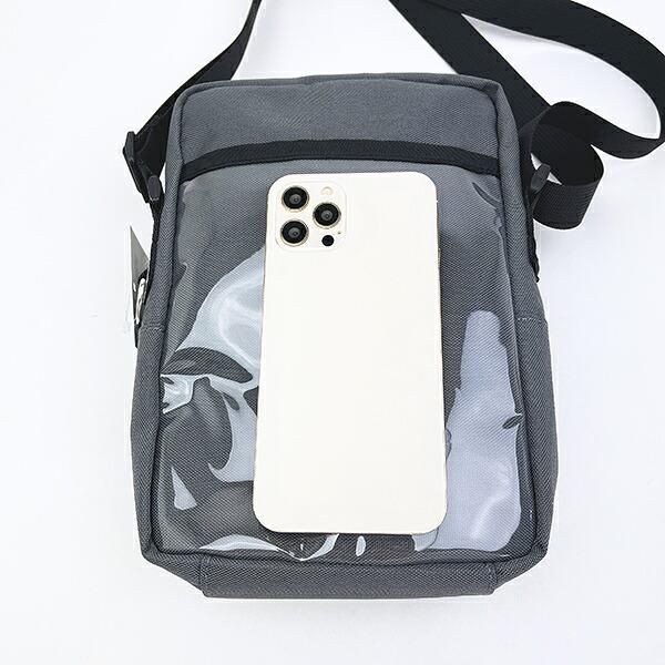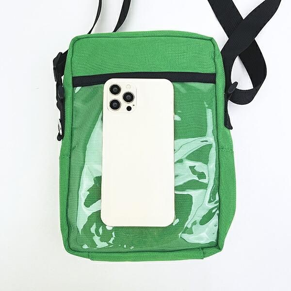 ショルダーバッグでコンパクトサイズながら、ポケットがたくさんあり、収納機能が充実しています。サイズ:22cm×16cm×8cm 素材:ポリエステル・PVC