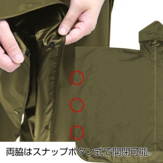 両脇にはスナップボタンが付いており、開閉が簡単に可能!急な雨や室内に入るときの脱着もスムーズ♪通常であれば憂鬱な雨の日もこのレインポンチョがあれば、楽しみなるはず!そしてこのレインポンチョに合わせたいリュックも一緒にご紹介させてください。