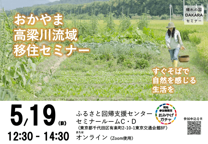 倉敷市 移住セミナー(おかやま高梁川流域)を 5月19日(日)に東京交通会館(有楽町)とオンラインにて開催