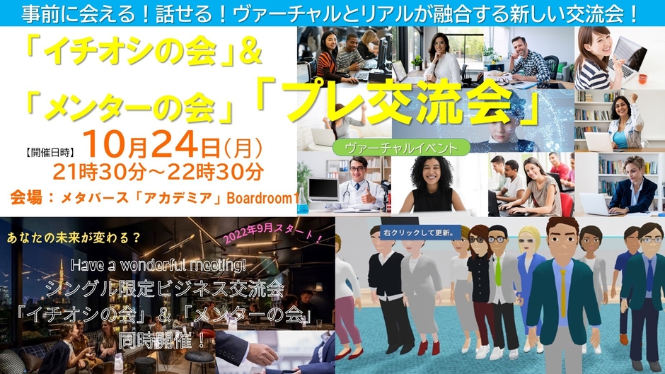 また、国際不動産カレッジアの人脈を活かした金融不動産業界中心のメタバース独身交流会をリアル開催と連動して9月に開催。今後メタバース上で毎月開催(次回10月24日)される他それに連動したリアル交流会(次回11月25日東京都港区で開催)も実施していく予定です。