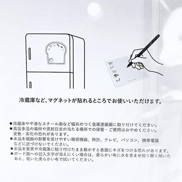 冷蔵庫などマグネットが貼り付けられる場所でぺたっとはりつけ消すことができるマジックでメモを取ることが可能です。やる事や買う物などを書き出しておけるフォーマットのようなデザインになっていて見やすいです。ペン付属付きですぐに使えますよ。サイズ:13cm×13cm×0.1cm 素材:紙・マグネット