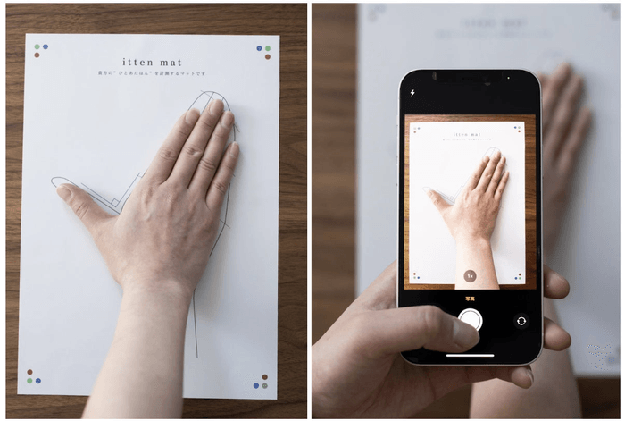 そこでittenは、手を計測する「itten mat」の上に “利き手” をのせ、スマホで自身の手を撮影。