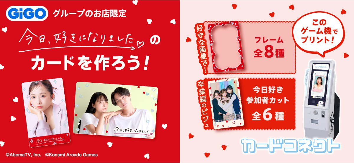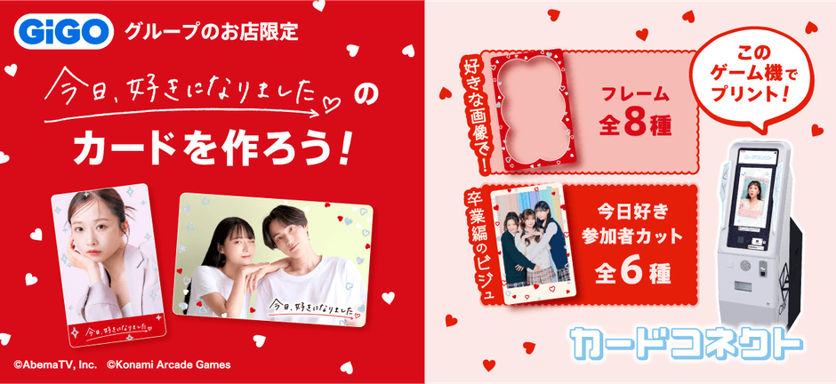 株式会社GENDA GiGO Entertainment(本社:東京都港区 代表取締役社長:二宮 一浩、以下「当社」)はGiGOグループのお店において、2026年3月19日(木)より、新しい未来のテレビ「ABEMA(アベマ)」のオリジナル恋愛リアリティーショー『今日、好きになりました。』(以下、『今日好き』)とのGiGO限定企画を開催いたします。