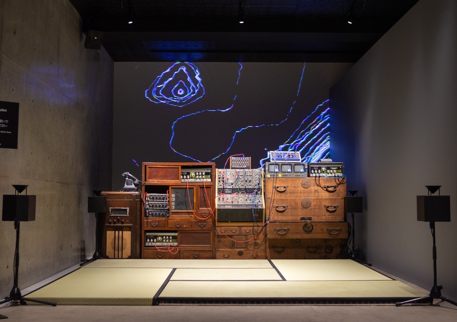 アナログ・シンセサイザーの名機であり、スロッビング・グリッスルが愛用したことでも知られる「ROLAND System 100M」と、熊本県八代産の天然い草を使用した伝統的な製法の畳に現代のテクノロジーを融合させたサウンドシステム『TTM-V20』。