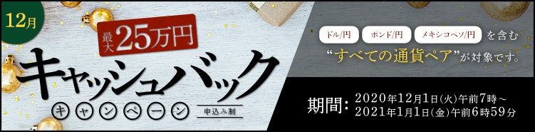 FXプライムbyGMO、 【最大25万円】をキャッシュバック! すべての通貨ペア対象のキャンペーンを12月1日より開始!